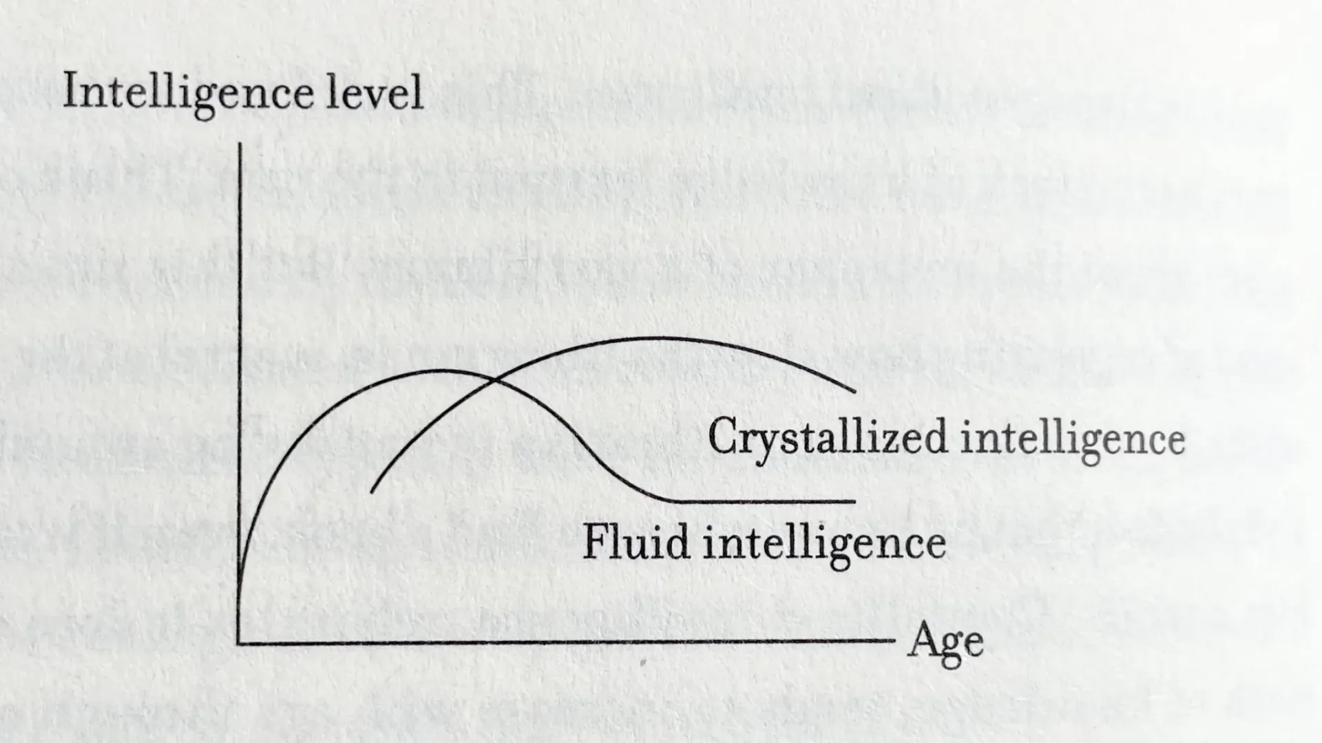 If you are experiencing decline in fluid intelligence – and if you are my age, you are – it doesn’t mean you are washed up. It means it is time to jump off the fluid intelligence curve and onto the crystallized intelligence curve. Those who fight against time are trying to bend the old curve instead of getting onto the new one. But it is almost impossible to bend, which is why people are so frustrated, and usually unsuccessful.”